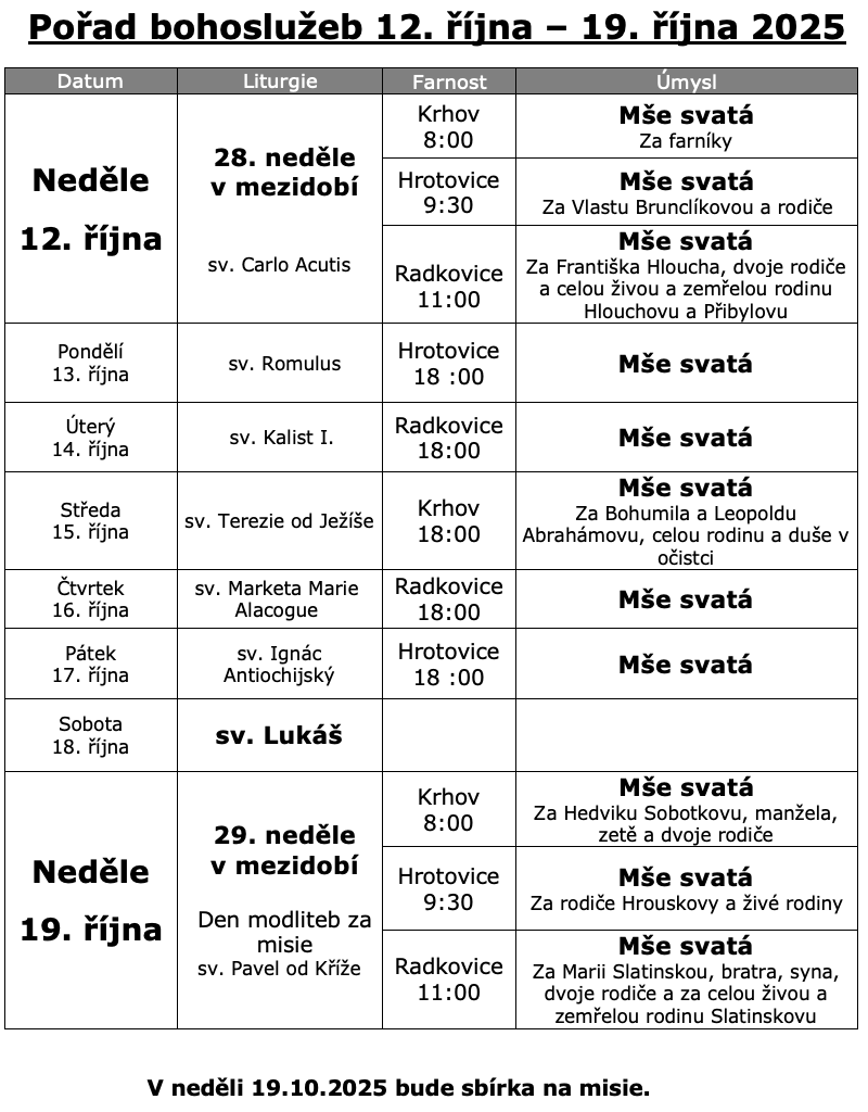 • Bohoslužby