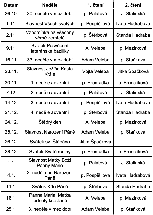 POZOR ZMĚNA: Na přání některých čtenářů bylo přehozeno pořadí čtenářů - ti co měli 1. čtení nyní mají 2.čtení a ti co měli 2. čtení nyní mají 1.čtení