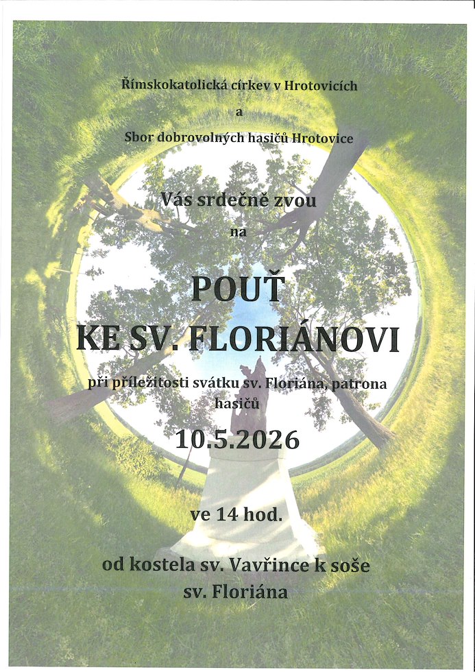 Zveme Vás na pouť ke Sv.Floriánovi dne 10.5.2026 ve 14. hodin.