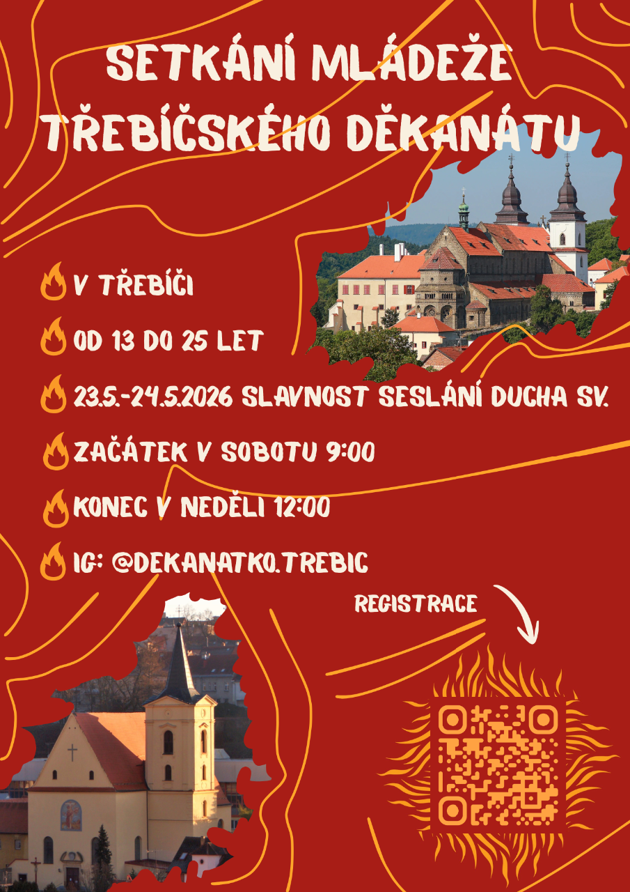 V termínu 23.5.-24.5.2026 proběhne setkání mládeže Třebíčského děkanátu. Jsou zváni všichni zájemci ve věku od 13 do 25 let.